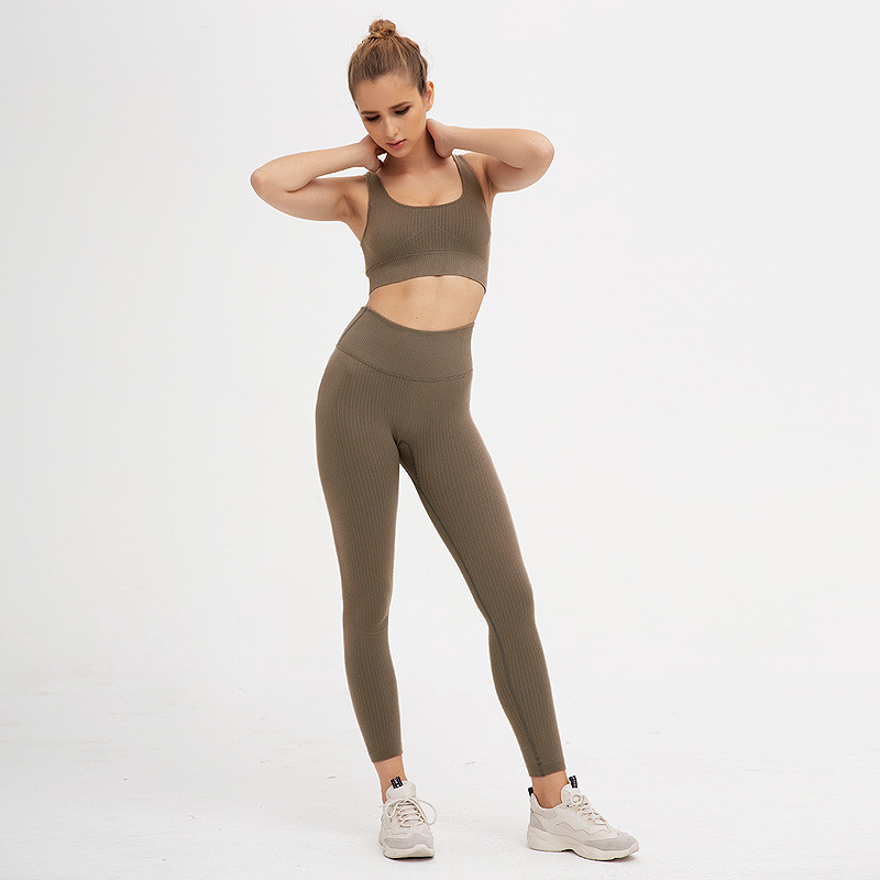 Seamless Yoga Set Women Sportswear Workout Leggings Back Cross Straps Training Active Sportwear
